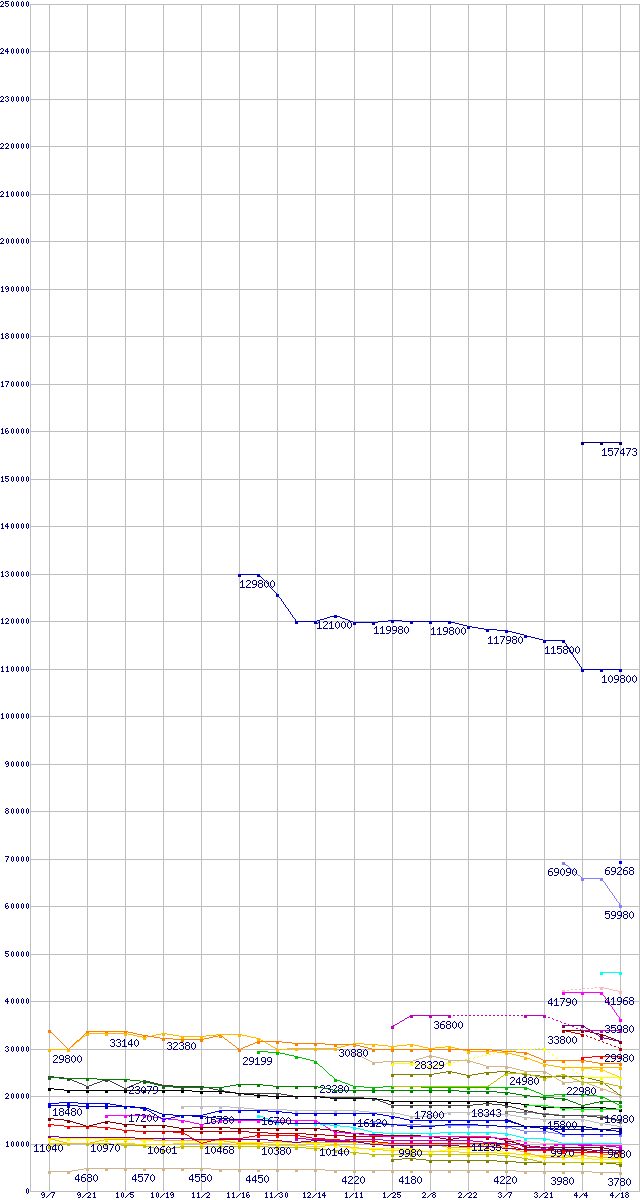 | CPU主要製品の最安値推移 | | | (2007年9月7日~2008年4月18日) |