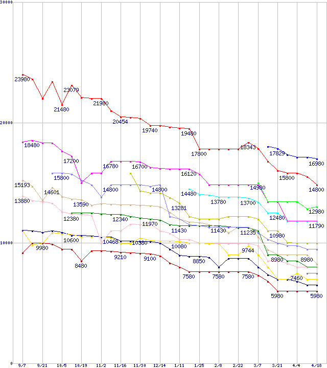 ※製品名をクリックすると個別のグラフを表示します ※点線部は販売店が確認できなかった、または調査データがないことを示します |
