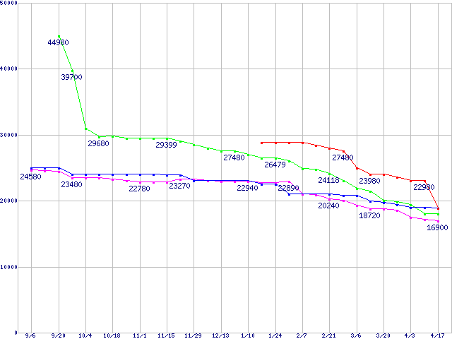 HDD/SSD主要製品(最安値1万5千円~2万円未満)の最安値推移