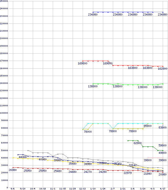 HDD/SSD主要製品(最安値2万円以上)の最安値推移