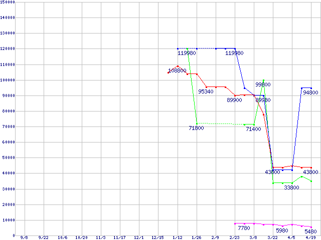 メモリ主要製品の最安値推移