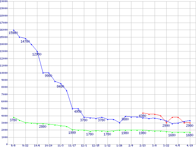 1GBモジュールの最安値推移