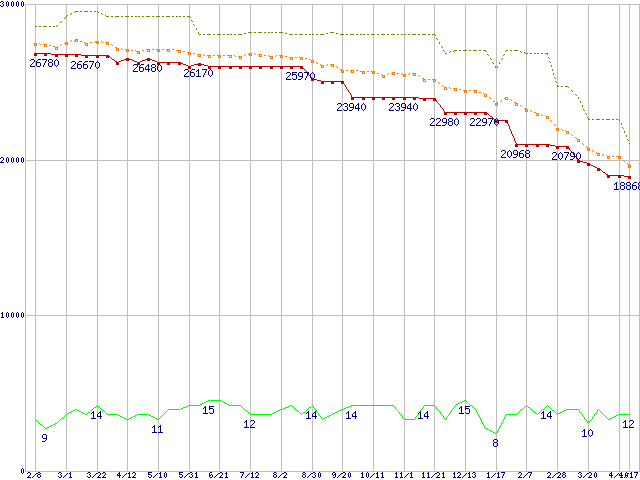 | WD1500ADFD (150.0GB)の価格推移 | | | (2007年2月8日~2008年4月17日) |