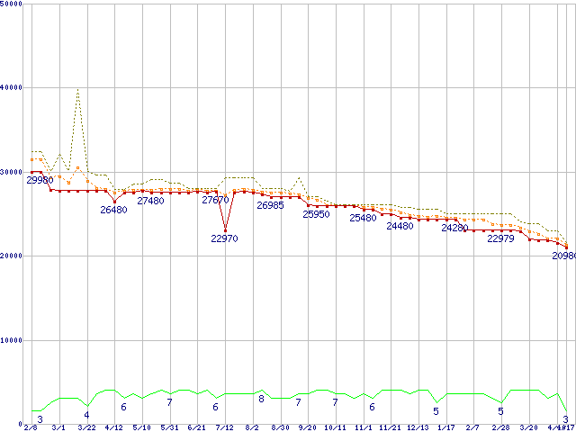 | WD1500AHFD (150.0GB)の価格推移 | | | (2007年2月8日~2008年4月17日) |