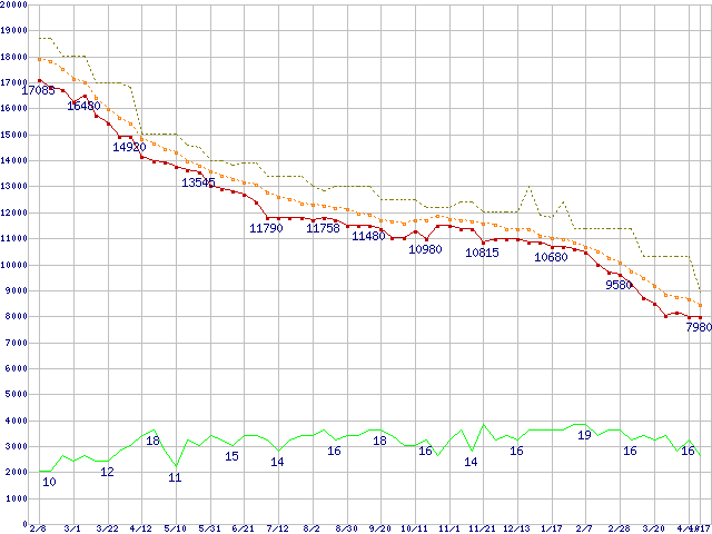| WD5000AAKS (500GB)の価格推移 | | | (2007年2月8日~2008年4月17日) |