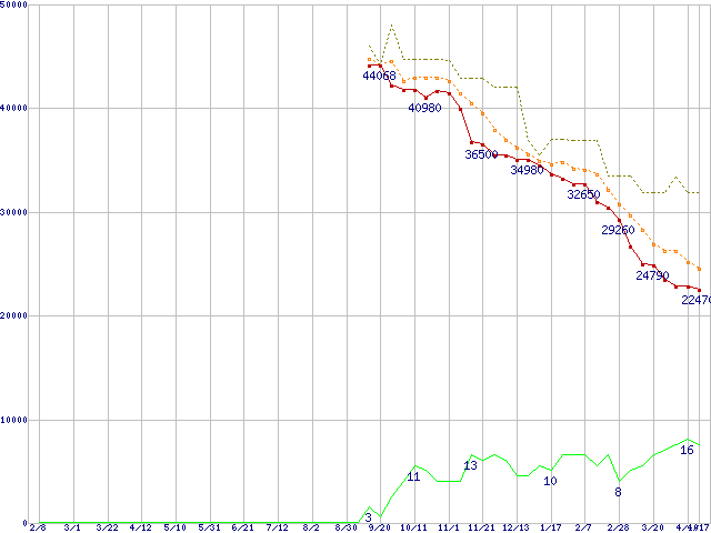 | ST31000340AS (1TB,32MB)の価格推移 | | | (2007年2月8日~2008年4月17日) |