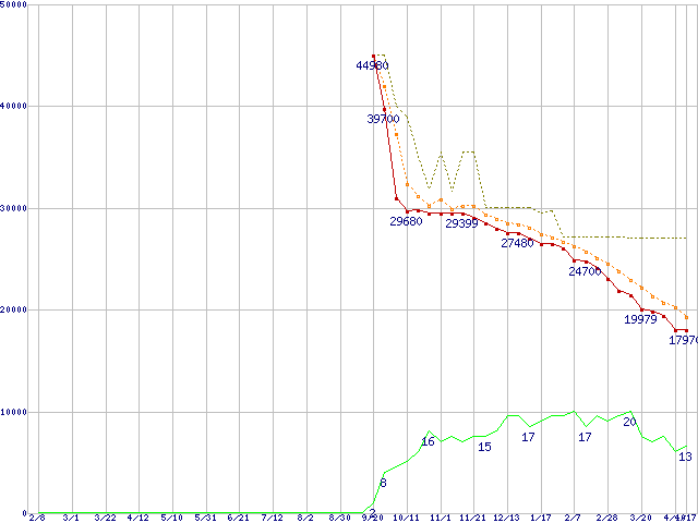 | WD10EACS (1TB,16MB)の価格推移 | | | (2007年2月8日~2008年4月17日) |