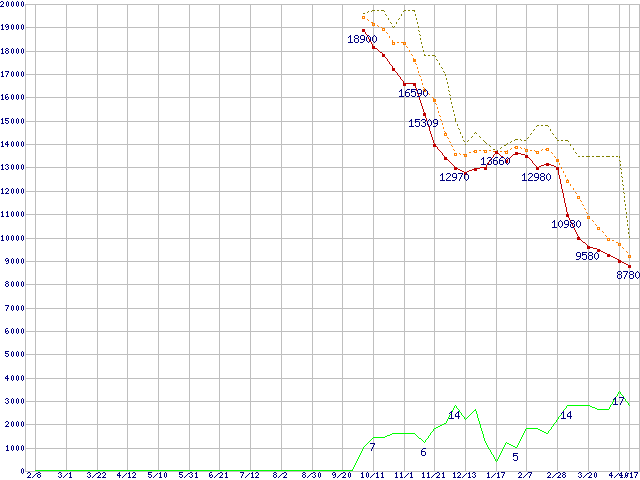| ST3500320AS (500GB,32MB)の価格推移 | | | (2007年2月8日~2008年4月17日) |
