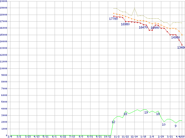 | Core 2 Duo E4600 (2.40GHz,L2 2MB)の価格推移 | | | (2007年2月9日~2008年4月18日) |
