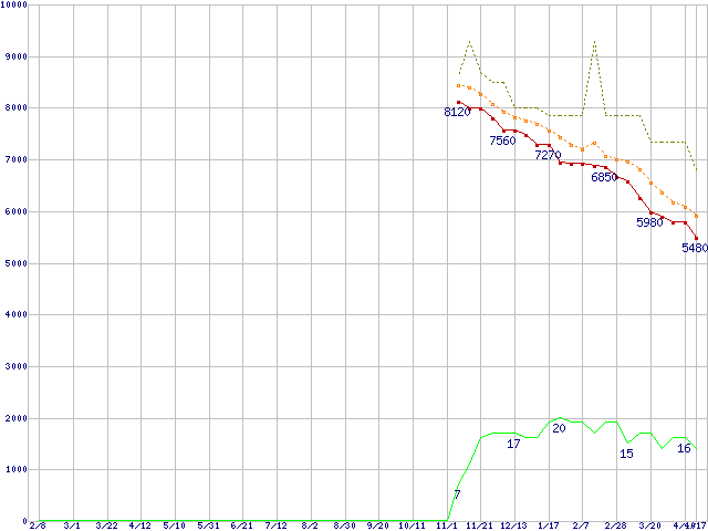 | HDP725025GLA380 (250GB,8MB)の価格推移 | | | (2007年2月8日~2008年4月17日) |