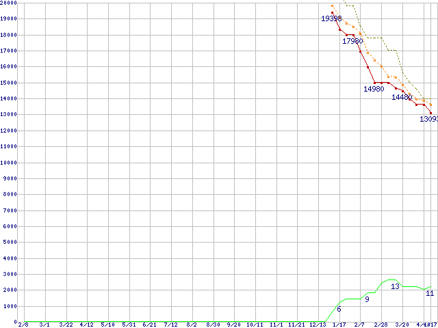 | WD7500AACS (750GB,16MB)の価格推移 | | | (2007年2月8日~2008年4月17日) |