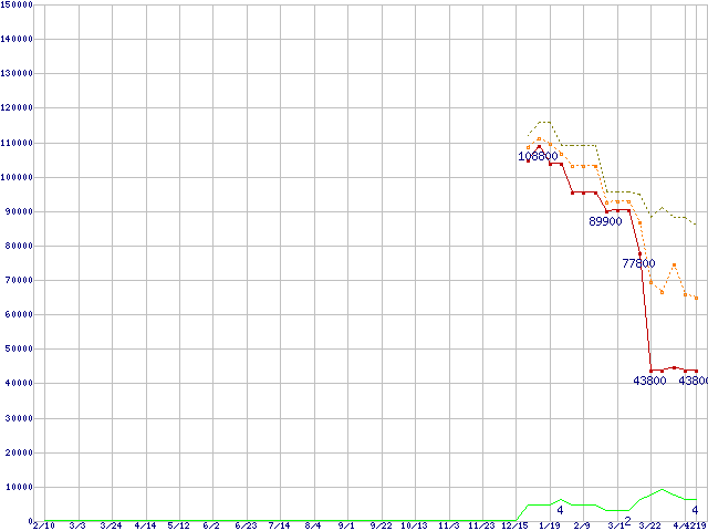 PC3-12800(DDR3-1600) DDR3 SDRAM DIMMの最安値推移
