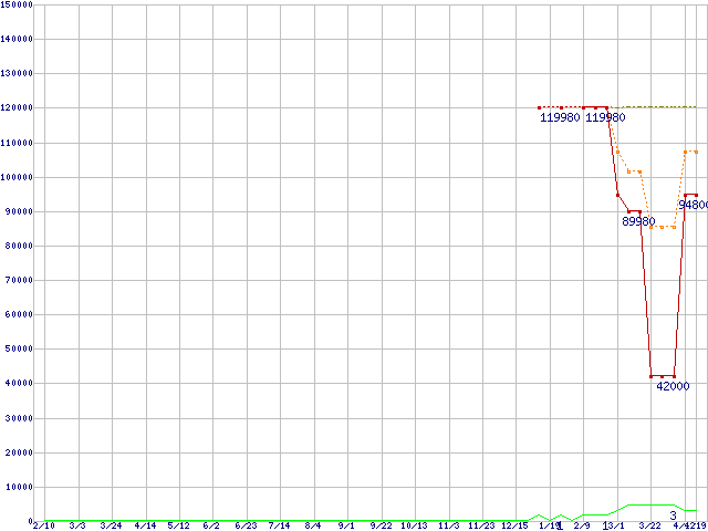 | PC3-8500 2GB×2枚組みセットの価格推移 | | | (2007年2月10日~2008年4月19日) |