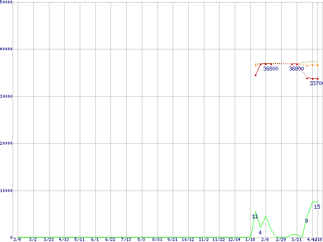 | Core 2 Duo E8500 (3.16GHz,L2 6MB)の価格推移 | | | (2007年2月9日~2008年4月18日) |
