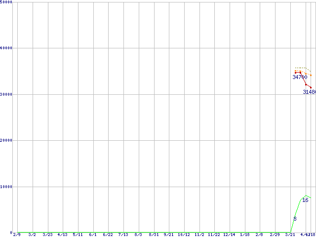 | Core 2 Quad Q9300 (2.5GHz,L2 3MB×2)の価格推移 | | | (2007年2月9日~2008年4月18日) |