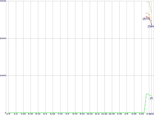 | Phenom X4 9750 (2.4GHz,L2 512KB×4,L3 2MB)の価格推移 | | | (2007年2月9日~2008年4月18日) |