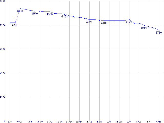 LGA775 (FSB 800MHz,L2 512KB,EM64T対応)の最安値推移