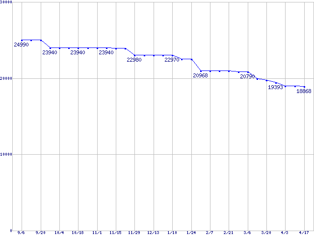 WD Raptor (10000rpm,SATA 1.5Gb/s,16MB,NCQ)の最安値推移