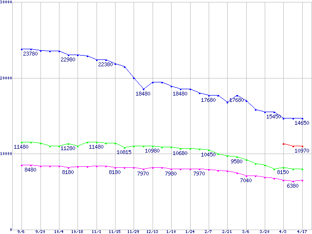 WD Caviar GP (7200rpm,SATA 3Gb/s,16MB)の最安値推移