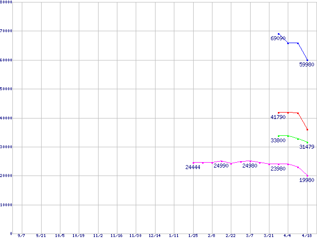 CPU主要製品(最安値6万円以上)の最安値推移