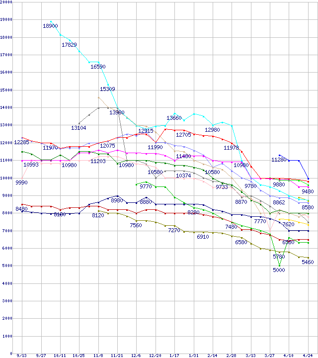 ※製品名をクリックすると個別のグラフを表示します ※点線部は販売店が確認できなかった、または調査データがないことを示します |