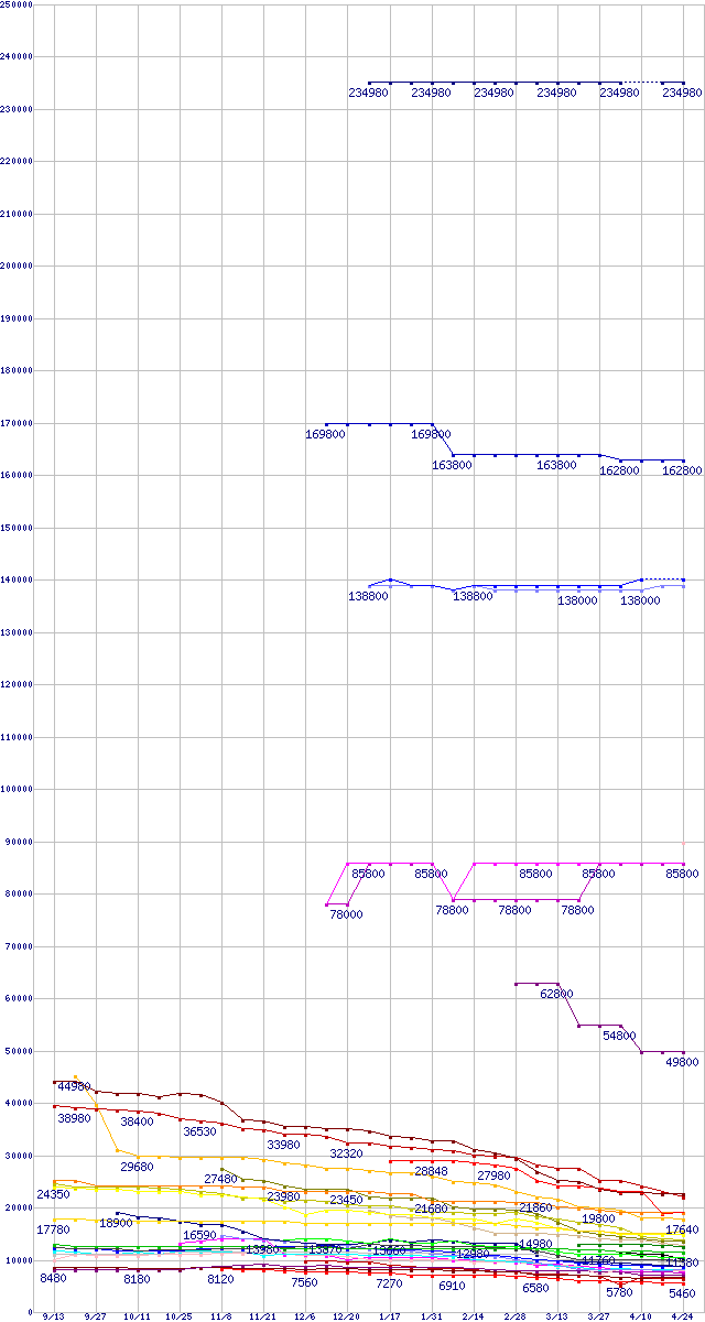 ※製品名をクリックすると個別のグラフを表示します ※点線部は販売店が確認できなかった、または調査データがないことを示します |