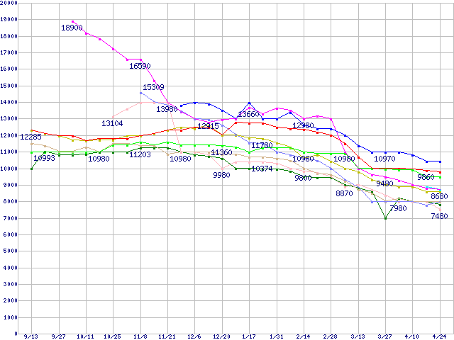 ※点線部は販売店が確認できなかった、または調査データがないことを示します