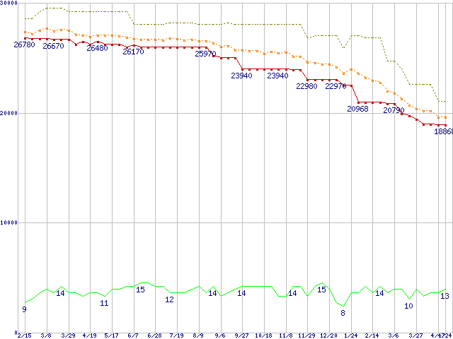 | WD1500ADFD (150.0GB)の価格推移 | | | (2007年2月15日~2008年4月24日) |
