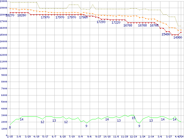 | WD740ADFD (74.3GB)の価格推移 | | | (2007年2月15日~2008年4月24日) |
