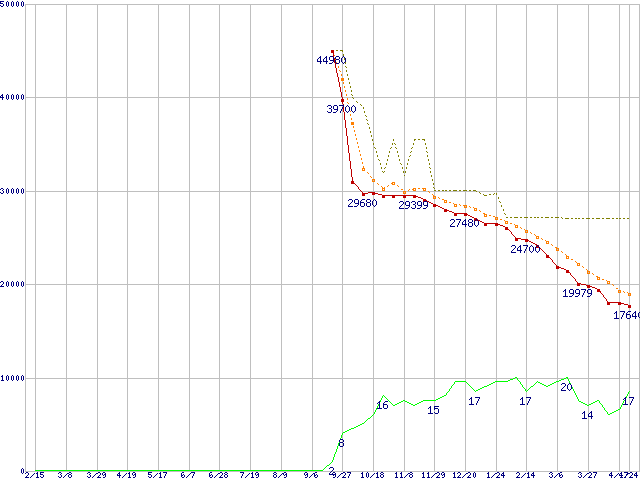 | WD10EACS (1TB,16MB)の価格推移 | | | (2007年2月15日~2008年4月24日) |