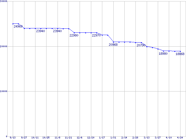 WD Raptor (10000rpm,SATA 1.5Gb/s,16MB,NCQ)の最安値推移
