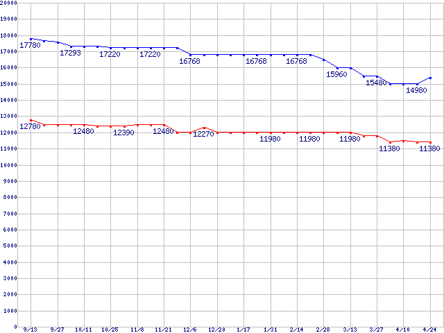 WD Raptor (10000rpm,SATA 1.5Gb/s,16MB,NCQ)の最安値推移