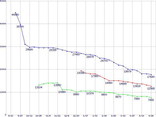 WD Raptor (10000rpm,SATA 1.5Gb/s,16MB,NCQ)の最安値推移