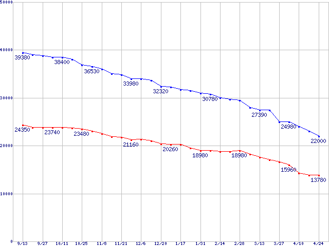 Deskstar P7K500 (7200rpm,SATA 3Gb/s)の最安値推移