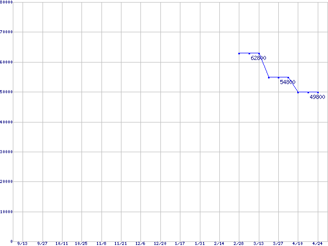 WD Raptor (10000rpm,SATA 1.5Gb/s,16MB,TLER)の最安値推移