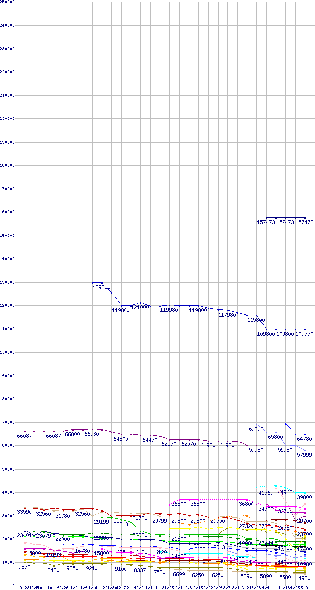| CPU主要製品の最安値推移 | | | (2007年9月28日~2008年5月9日) |