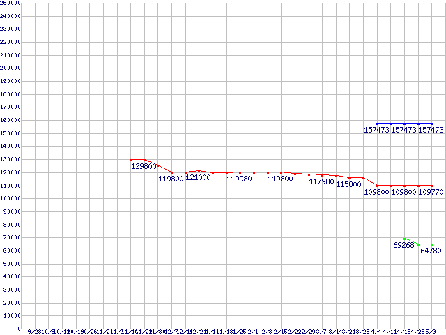 CPU主要製品(最安値6万円以上)の最安値推移
