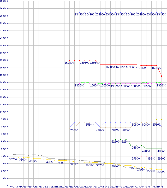 HDD/SSD主要製品(最安値2万円以上)の最安値推移
