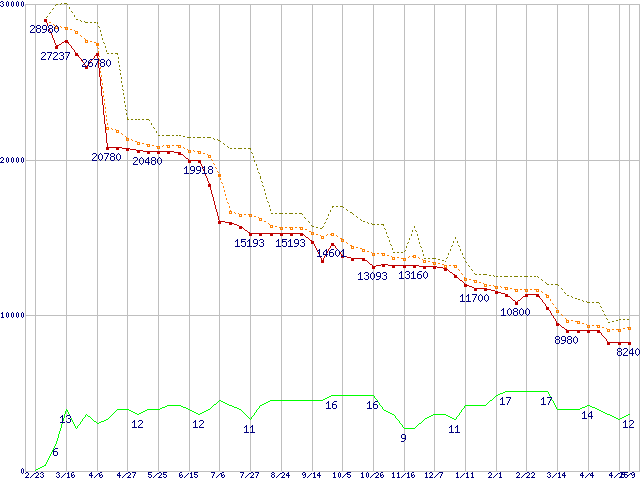 | Athlon 64 X2 5000+ (2.6GHz,L2 512KB×2)の価格推移 | | | (2007年2月23日~2008年5月9日) |