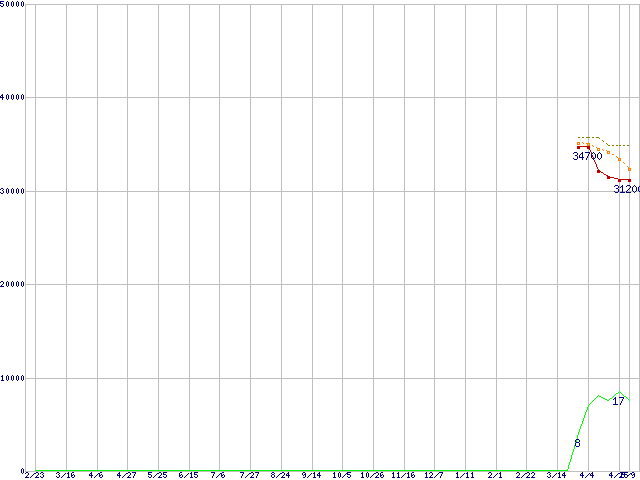 | Core 2 Quad Q9300 (2.5GHz,L2 3MB×2)の価格推移 | | | (2007年2月23日~2008年5月9日) |