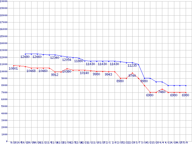 Socket AM2 (HyperTransport,Dual Core)の最安値推移
