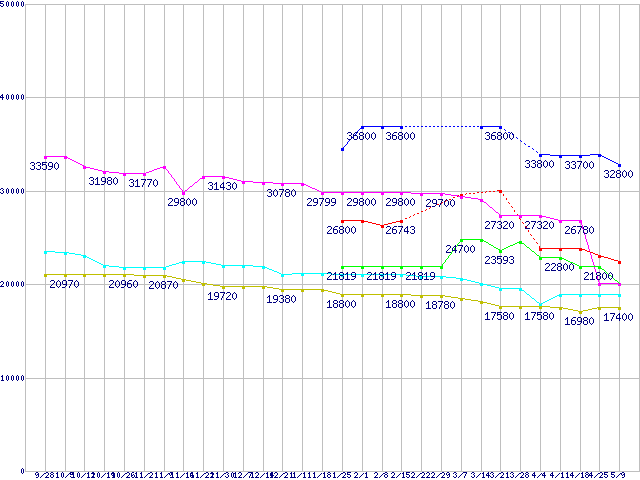 LGA775 (FSB 1066MHz,Dual Core,TDP 65W)の最安値推移
