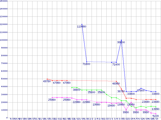 メモリ主要製品の最安値推移