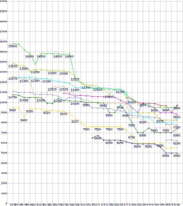 CPU主要製品(最安値1万円~2万円未満)の最安値推移