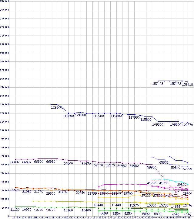 ※製品名をクリックすると個別のグラフを表示します ※点線部は販売店が確認できなかった、または調査データがないことを示します |
