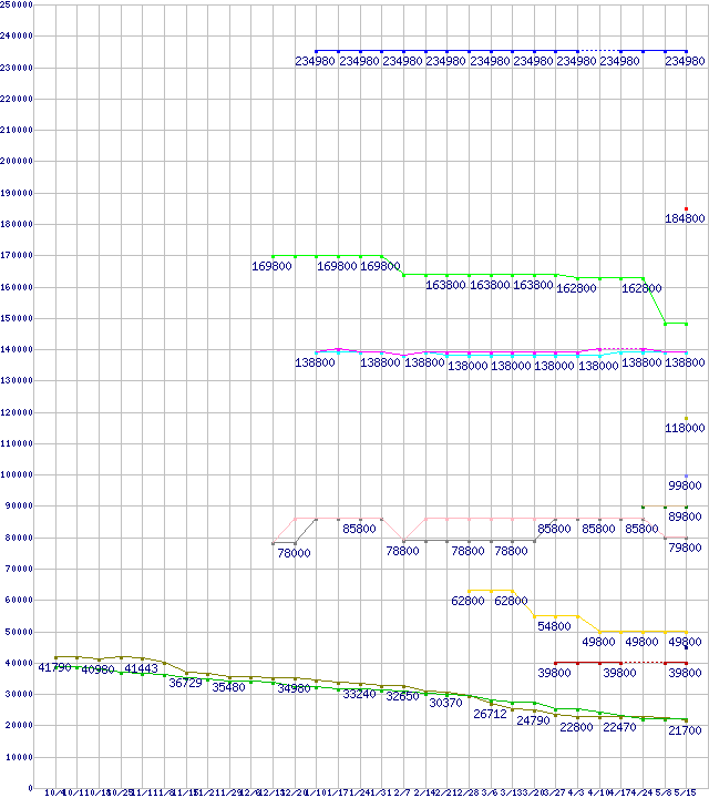 HDD/SSD主要製品(最安値1万5千円~2万円未満)の最安値推移