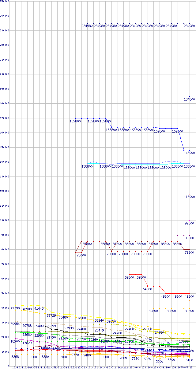 [前グラフ]:WD Caviar SE16 (7200rpm,SATA 3Gb/s,16MB)の最安値推移