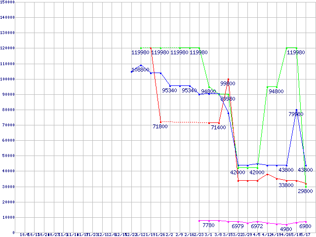 メモリ主要製品の最安値推移