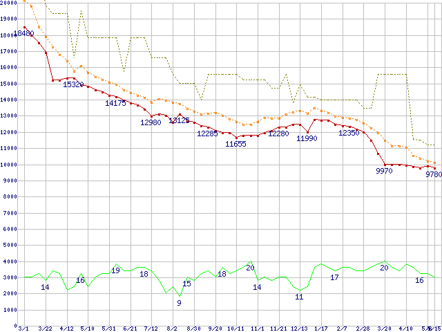 | ST3500630A (500GB,16MB)の価格推移 | | | (2007年3月1日~2008年5月15日) |