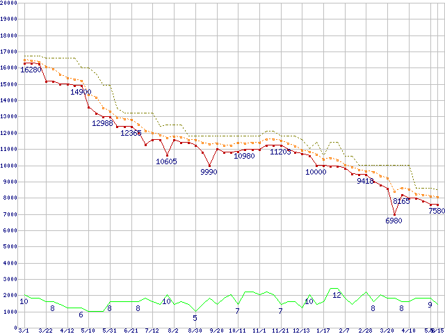 | HD501LJ (500GB,16MB)の価格推移 | | | (2007年3月1日~2008年5月15日) |